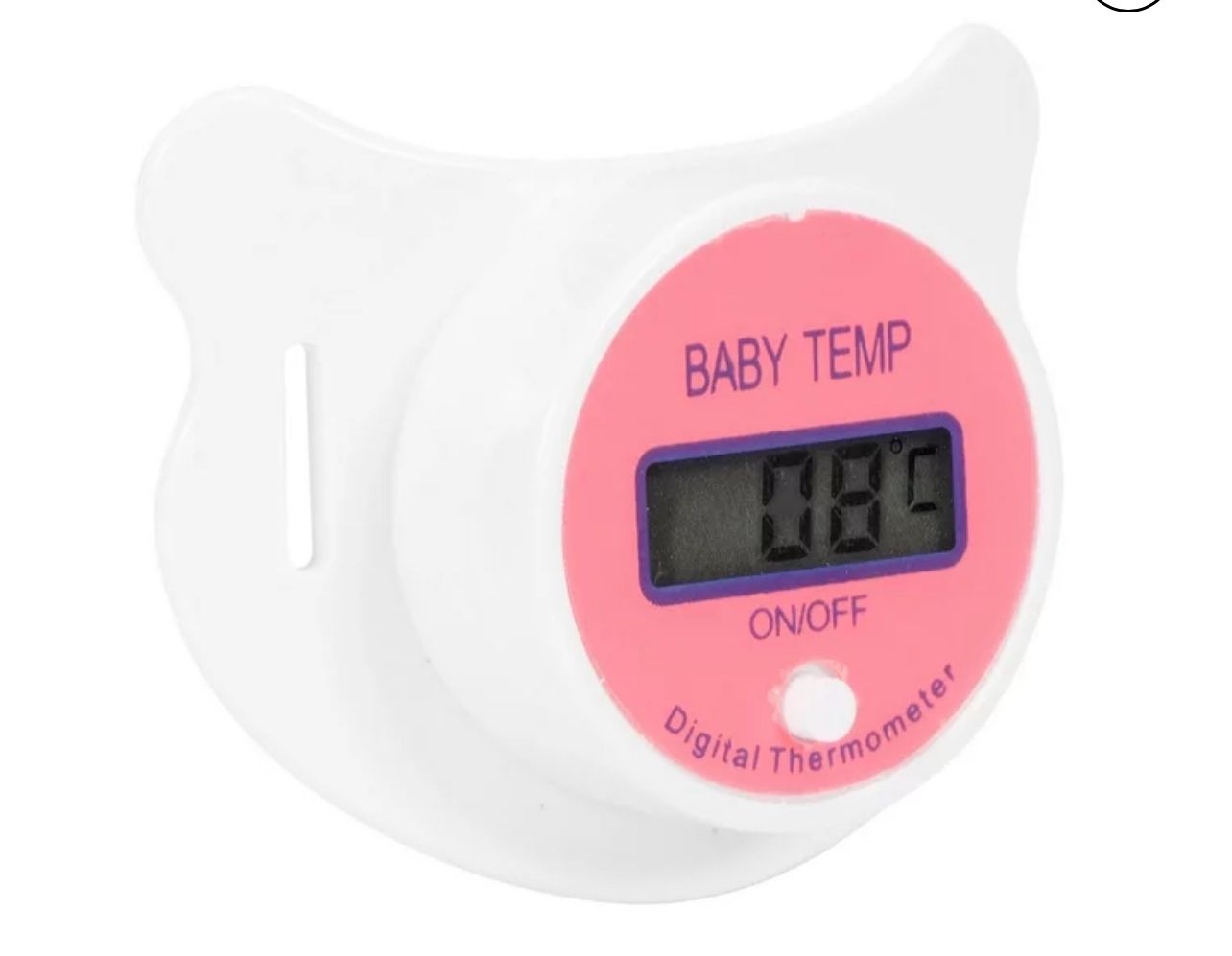 ermómetro para niños Chupete recién nacido Mantenga la salud de su bebé monitoreándolo. Sin irritar ni molestar al bebé, puedes medir la temperatura corporal. Esto es posible con el uso de este exclusivo termómetro para la fiebre para niños. Este exclusivo dispositivo de seguimiento de temperatura es perfecto para bebés o niños menores de 4 años. El dispositivo parece un chupete y también funciona como dispositivo de succión para niños. Incluye un termómetro incorporado en su interior. Es capaz de medir la temperatura interior del niño sin que el bebé lo sepa. Esto ofrece a los padres menos momentos de inquietud. Esto también hace que el proceso de seguimiento del bebé sea más fácil de gestionar. Dispositivo dos en uno El dispositivo funciona como chupete y como comprobador de temperatura. Además, no causa ningún daño a su bebé ni al medio ambiente. Este dispositivo es seguro dentro de la boca del bebé. Controlar la temperatura del bebé es una tarea muy difícil. Por lo tanto, facilite el proceso utilizando este dispositivo único. El dispositivo es capaz de proporcionar temperaturas corporales precisas. El termómetro para niños también cuenta con un material de silicona de alta calidad en su construcción. Esto hace que el dispositivo sea muy seguro de usar entre niños pequeños. El dispositivo también incluye una pantalla LCD. Aquí es donde puedes ver la lectura de temperatura de un vistazo. Rápido y Preciso El dispositivo funciona para tomar la temperatura del bebé en menos de 3 minutos. Fácil de usar, encienda el dispositivo para iniciar la lectura y apáguelo para detenerla. La lectura de temperatura oscila entre 32 grados y 42 grados Celsius o 95,9 a 107,6 grados Fahrenheit. Pequeño y compacto, el dispositivo sólo mide unos 6,2 cm de largo, 4 cm de ancho y 4,5 cm de alto. El dispositivo también incluye una alarma sonora. Esta función produce señales de que el dispositivo ha dejado de leer. Para encenderlo, el dispositivo necesita una pila de botón LR o SR – 41 de 1,5 V. Esta batería viene con el paquete