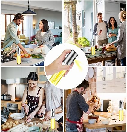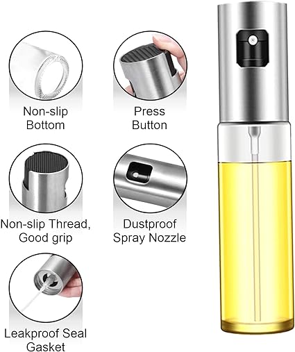 - Botella de spray de aceite: El mister de aceite es perfecto para aceite, vinagre, vino de cocina, aceite vegetal, salsa de soja, agua, muchos tipos de aceites. Solo un poco de prensa, obtendrá niebla fina en la freidora de aire, sartén, estufa. Sugerimos que coloque el rociador más alto cuando use aceite para obtener una niebla mejor formada