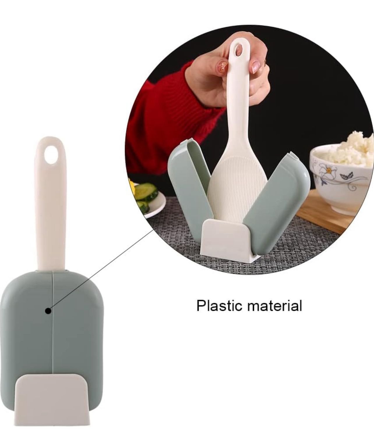 - Material: esta paleta de arroz está hecha de plástico, que es resistente a altas temperaturas, resistente al desgaste y no envejece fácilmente.