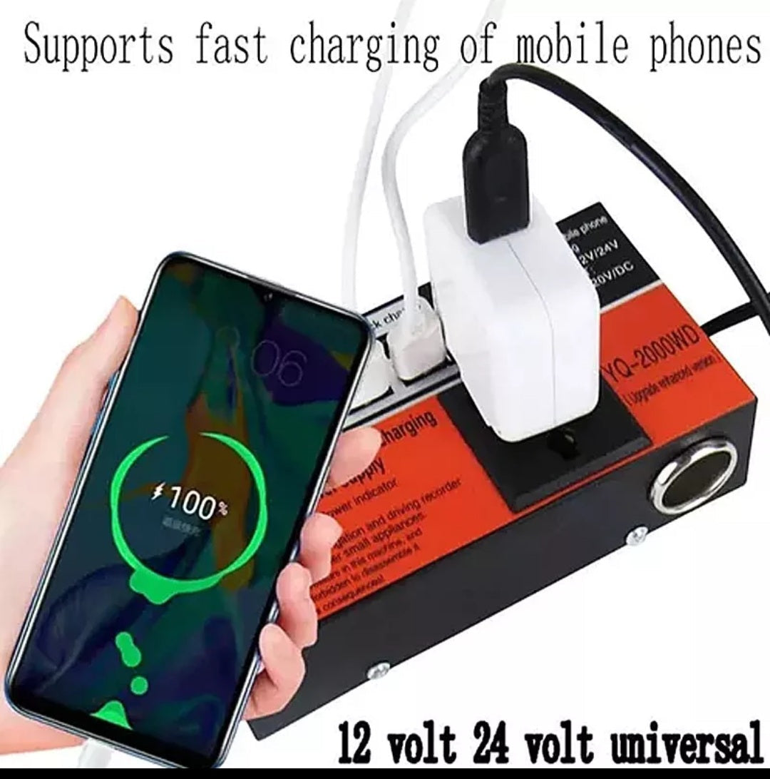 12 V 24 V a 220 V: inversor de coche multifuncional, con conversión de impulso de 12 V 24 V a 220 V, adecuado para camiones, coches y vehículos todo terreno, etc. INTERRUPTOR DE UN BOTÓN: el inversor de coche está diseñado con un interruptor de botón, lo que facilita el control de la fuente de alimentación, cómodo, eficiente y seguro. ALTA EFICIENCIA: ayuda a mejorar significativamente la velocidad de carga, chip inteligente voltaje y corriente de salida, con buena estabilidad y alta velocidad. Múltiple INTERFAZ: El inversor está equipado con múltiples interfaces USB, enchufe y orificio de carga para coche, lo que lo hace cómodo y práctico. DISEÑO COMPACTO: la fuente de alimentación con inversor para vehículos tiene un tamaño compacto, cómoda de transportar y usar, y ocupa muy poco espacio interior.