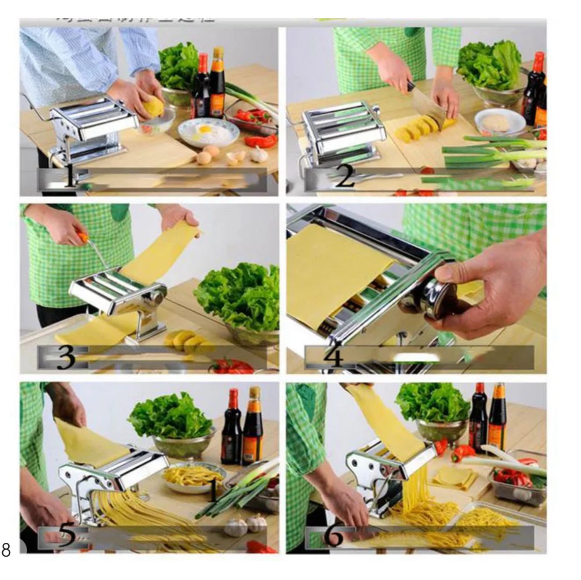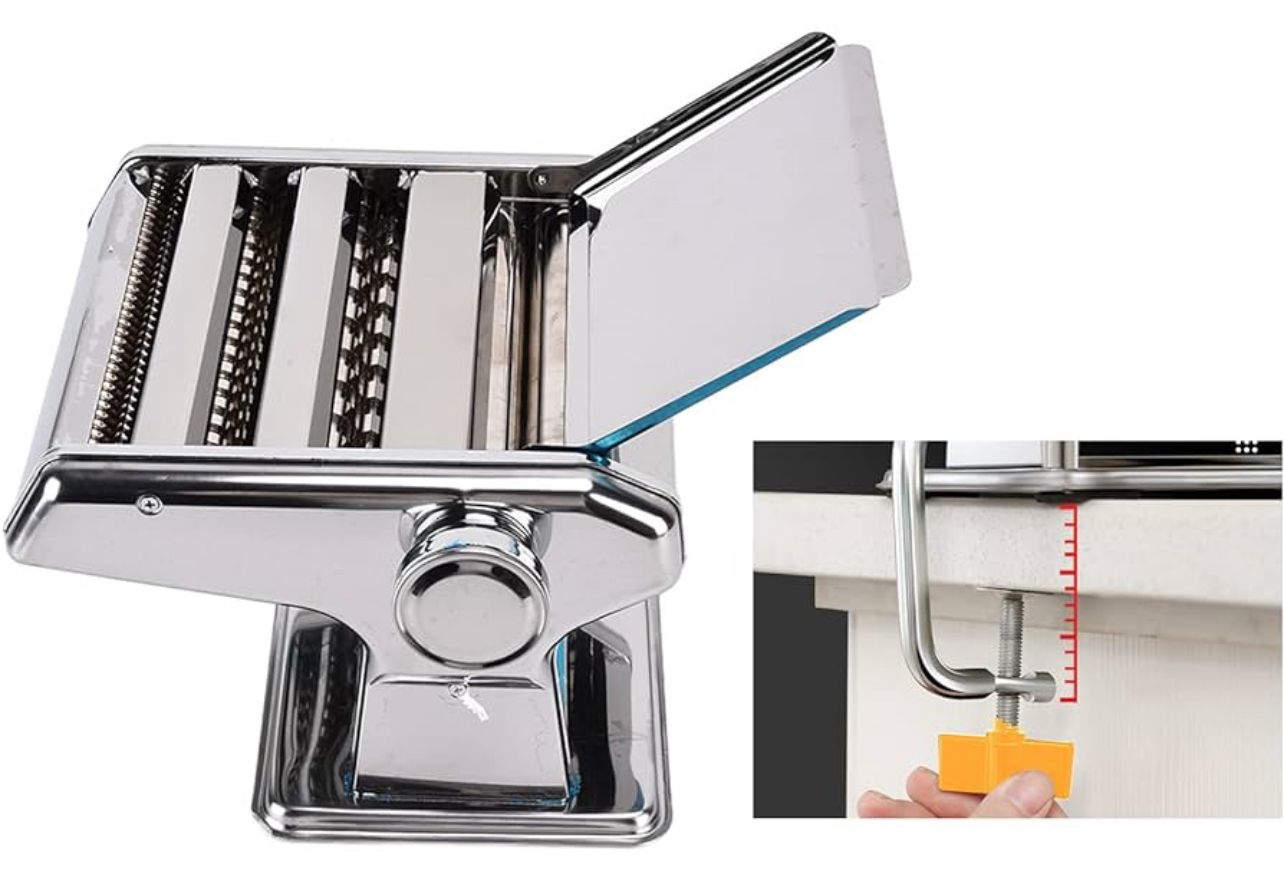 Juego de máquina manual para hacer pasta, todo en uno, 6 ajustes de grosor para lasaña casera fresca, rodillo de prensa y cortador de prensa de rodillos de masa de espagueti, máquina de fabricación de fideos de acero inoxidable