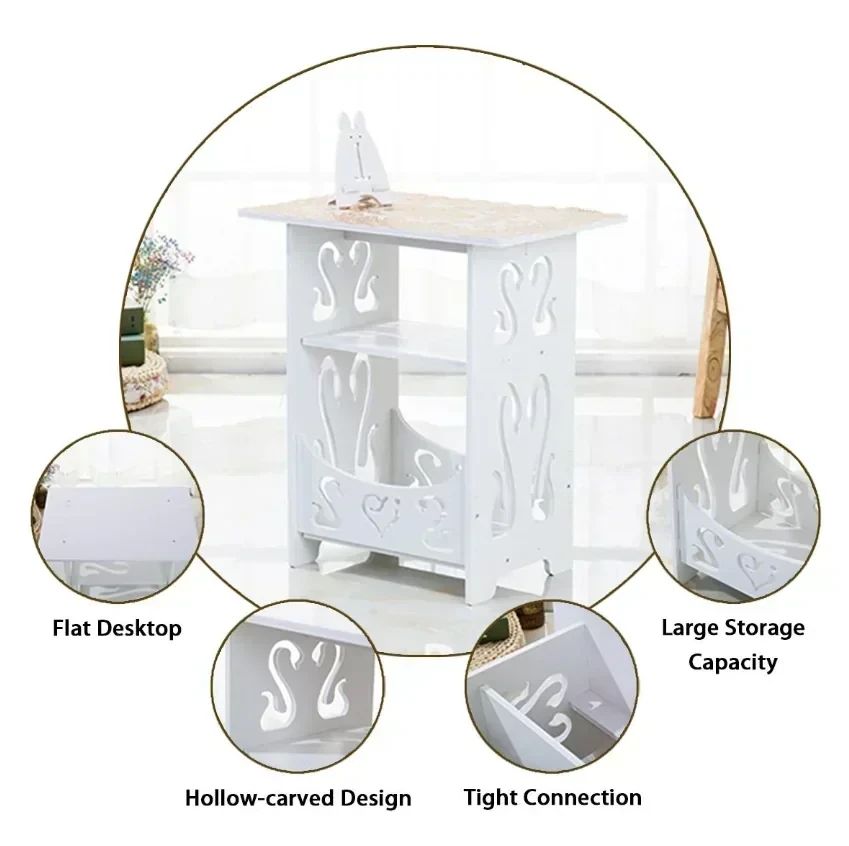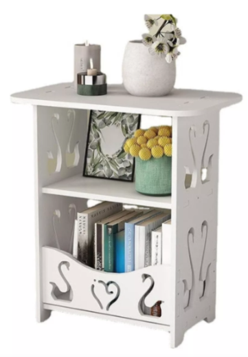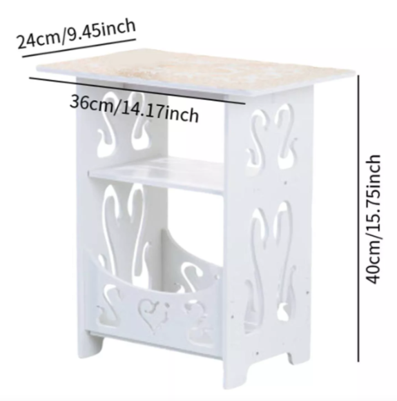 Material compuesto de madera y plastico:El PVC es un nuevo tipo de material para muebles ecologico que es liviano y resistente a la humedad. Podras montar y desmontar esta mesita de noche sin esfuerzo.Espacio de almacenamiento de tres capas:Puede exhibir y almacenar libros, refrigerios, plantas pequenas u otras decoraciones en su vida. Aprovecha al maximo tu espacio vital y manten tus cosas ordenadas y organizadas.Simple y moderno:El patron hueco simple puede aumentar la belleza y la decoracion de la mesita de noche. Las versatiles mesitas de noche blancas combinan perfectamente con cualquier estilo de mobiliario.Ahorre espacio:La mesa del sofa mide 36 x 24 x 40 cm, adecuada para su sala de estar, dormitorio, bano, balcon, pasillo, rincon o cualquier otro lugar.Usos multiples:Esta pequena mesa es adecuada para mesitas de noche, mesas de cafe, mesas auxiliares, mesitas de noche, mesas de sofa, mesas estrechas, etc.