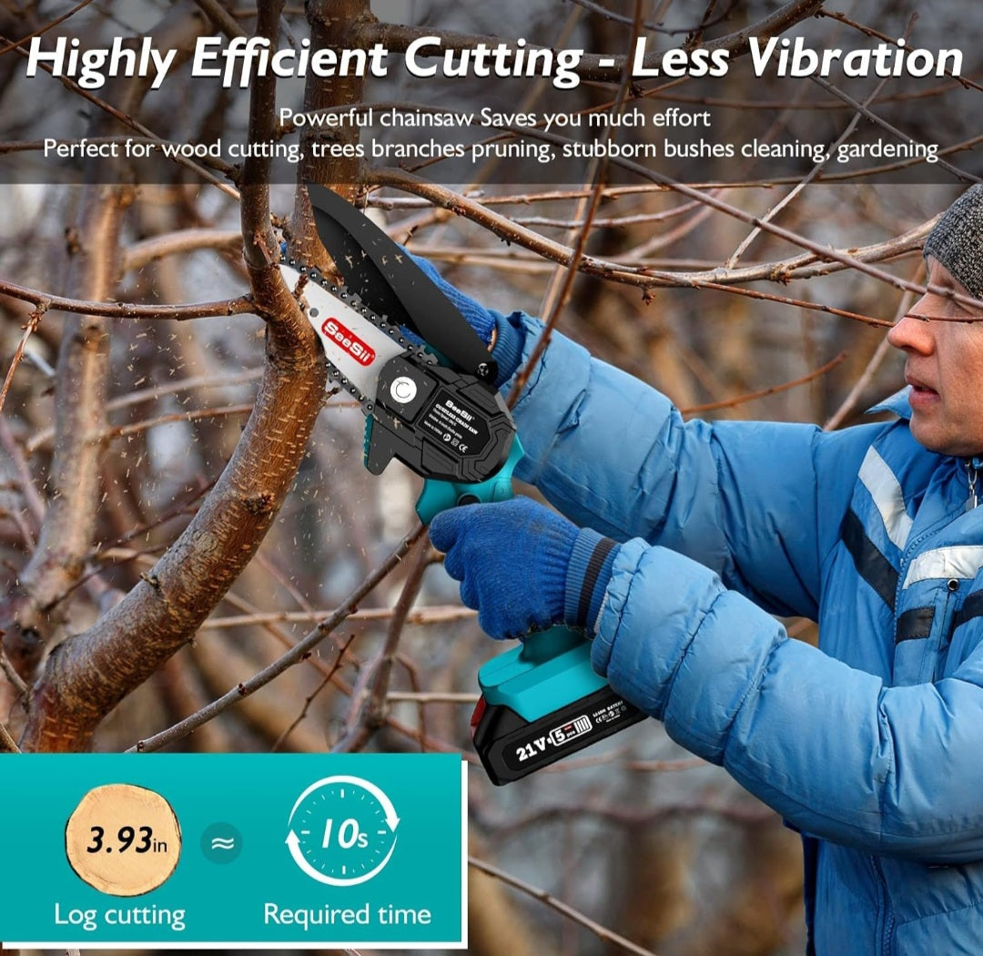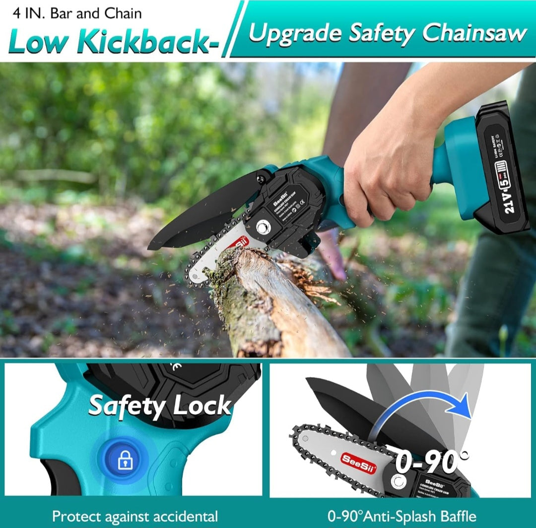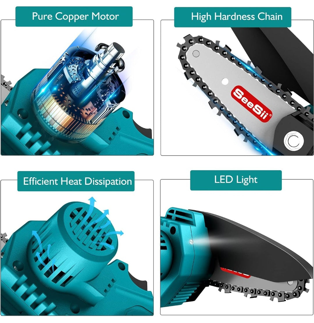 - ? Corte altamente eficiente: el motor de alta eficiencia de cobre puro mejorado proporciona a tu mini sierra eléctrica un tiempo de funcionamiento más largo, mayor par y mayor potencia, reduciendo así el desgaste y prolongando la vida útil de la herramienta. Las baterías de iones de litio con autosobrecarga y protección de temperatura proporcionan una duración mucho más larga.