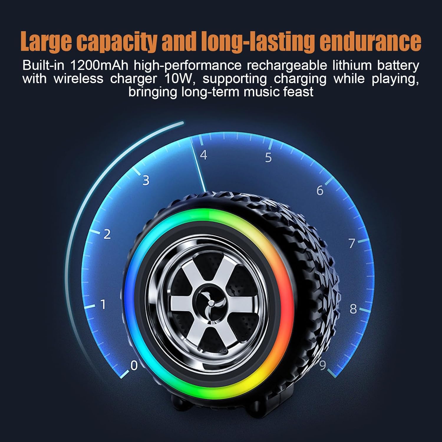 Con una batería de gran capacidad y múltiples métodos de conexión, puedes disfrutar de un uso gratuito en interiores y exteriores. ¡Su exclusivo diseño en forma de rueda te permite bailar con la música dondequiera que vayas!