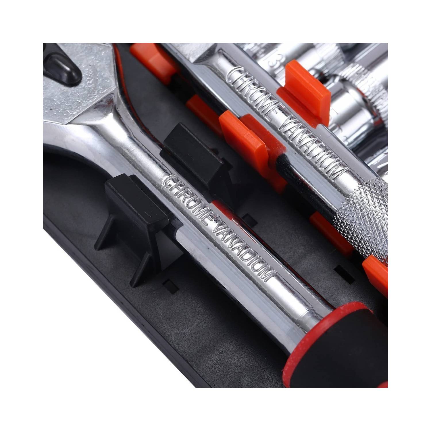 Con este increíble set de Llave chicharra y sus 10 dados podrás aumentar la eficiencia en tus labores de reparación y ajustado de piezas fácil de usar y trasladar e igualmente se puede colgar.